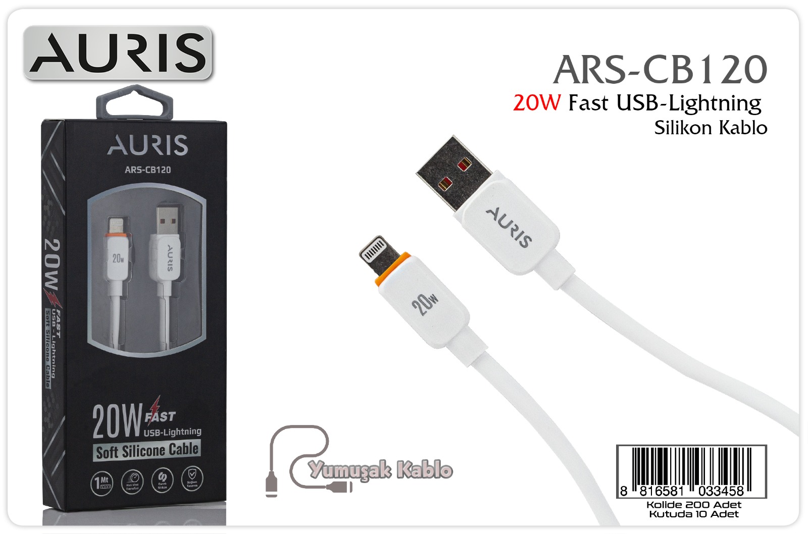 • Auris CB120 25W Lightning Silikon Kablo
